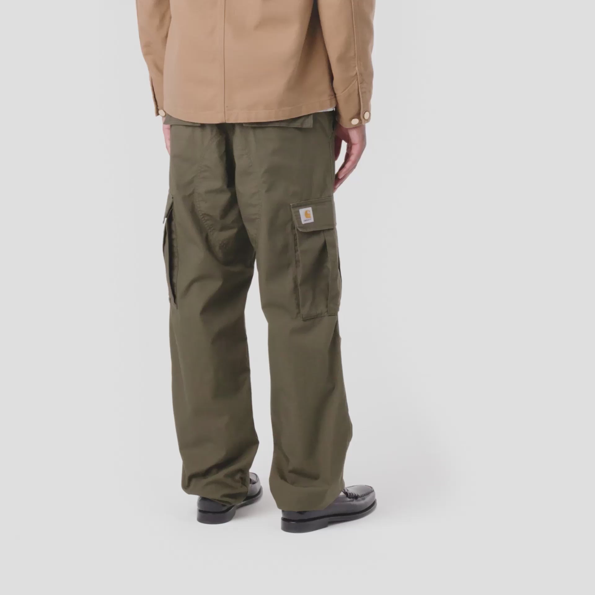 The Regular Cargo Pant is made of midweight cotton Columbia ripstop, which has been rinsed for a softer feel. The style is cut in a regular fit with a low waist and features double-layer knees, adding to its robust qualities. Multiple pockets throughout nod to the garment's military-style influences, and tie detailing at the cuffs allow for the fit to be adjusted.