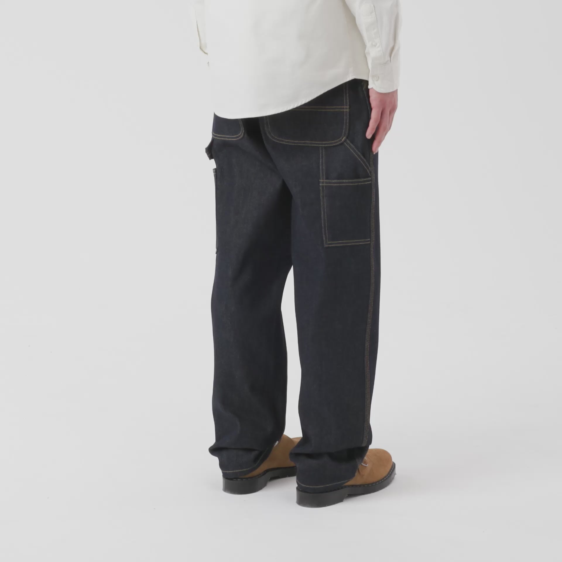 The Single Knee Pant draws inspiration from classic work pant silhouettes and is constructed from Smith denim, which is a robust 13.5 oz cotton twill fabric. It is cut in a relaxed straight fit with a regular waist. The style comes in several iterations, including those which have been rinsed for softness without compromising on durability, as well as versions which have been stone-bleached for a lighter finish and worn-in appearance. Triple-stitched details make the pant more robust, while tool pockets and a hammer loop offer further nods to the item's utilitarian influences.